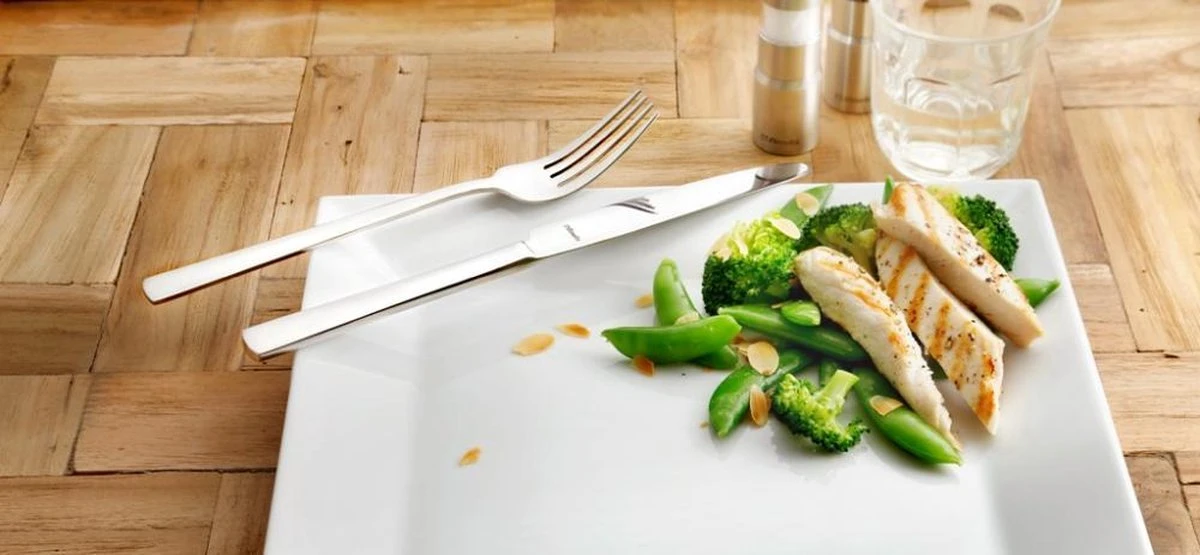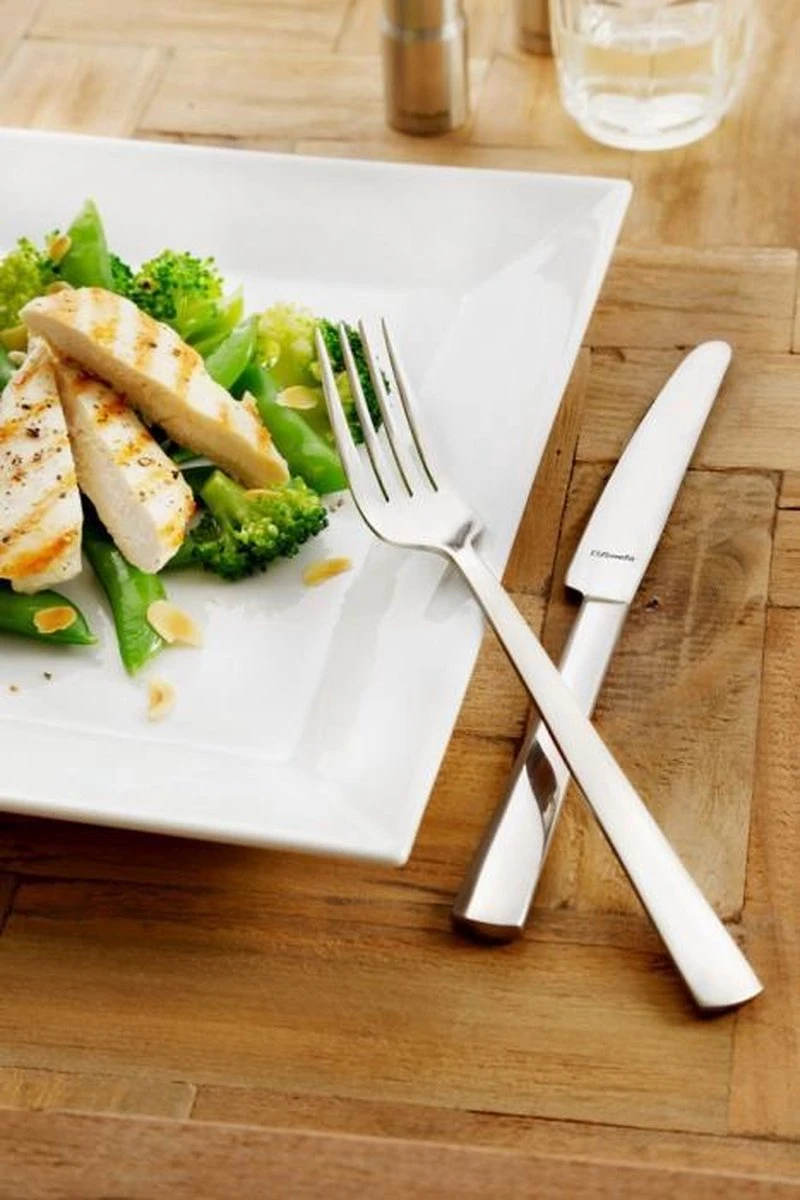 De Moderno lijn van Amefa is strak en subtiel uitgevoerd en heeft daardoor een moderne en tijdloze uitstraling.Deze bestekset Moderno van Amefa, bestaande uit 24 stuks bevat: 6 Tafelmessen 6 Tafelvorken 6 Tafellepels 6 KoffielepelsDe kwaliteit van AmefaKwaliteit staat bij Amefa hoog in het vaandel. Deze 24-delige bestekset is met grote zorg en precisie vervaardigd en is gemaakt van chroomnikkelstaal, beter bekend als 18/10 roestvrij staal. Door de hoge kwaliteit van 18/10 staal zijn de producten corrosie bestendig en hebben een duurzame glans (indien de onderhoudsinstructies in acht worden genomen). Producten van 18/10 roestvrij staal kunnen gereinigd worden in de vaatwasmachine.Mist u nog iets in uw bestekset? Bekijk dan de volledige collectie van Amefa Moderno. Ook voor ander bestek van Amefa bent u bij ons aan het juiste adres. Bekijk onze gehele Amefa collectie!