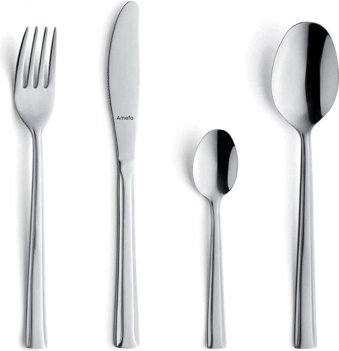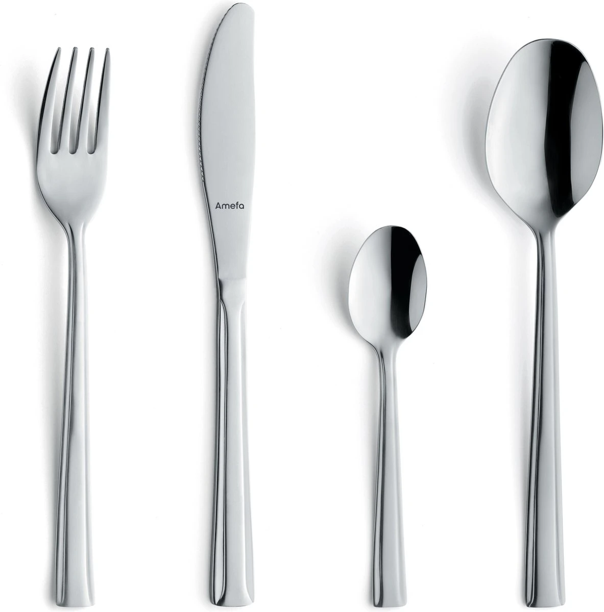 Bij Amefa vind je een breed scala aan bestekmodellen en bijbehorende producten, zodat je bij elke gelegenheid de juiste sfeer creëert. Of het nu gaat om een ontbijt met je familie, een diner met vrienden of om een feestelijke barbecue: Amefa heeft voor elke gelegenheid of stijl een mooi design. Dat maakt alledaags genieten van lekker eten nog leuker. Kwaliteit en onderhoudKwaliteit staat bij Amefa hoog in het vaandel. Dit bestek is met grote zorg en precisie vervaardigd en is gemaakt van hoogwaardig 18/0 chroomstaal. Onderhoudstips vind je op de verpakking of op onze website www.amefa.nl.