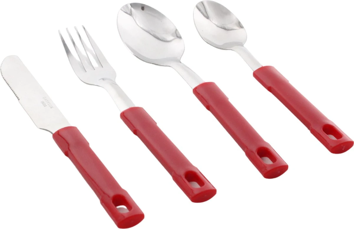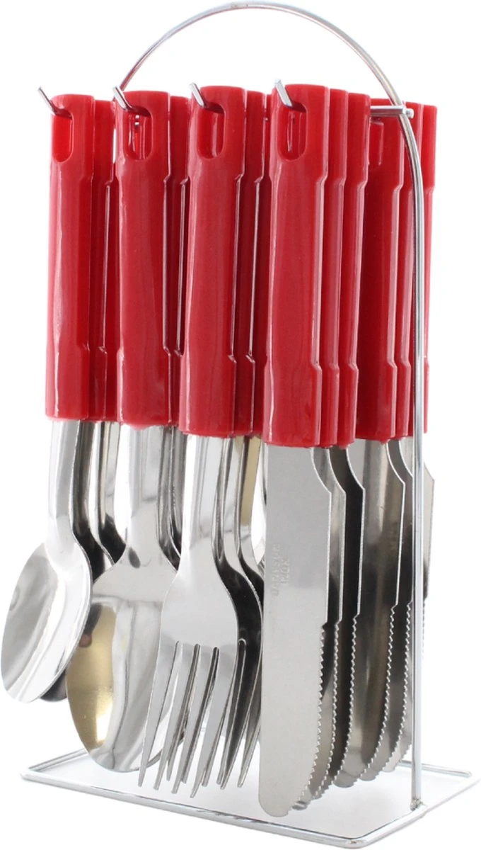 Het bestek is in de kleur rood