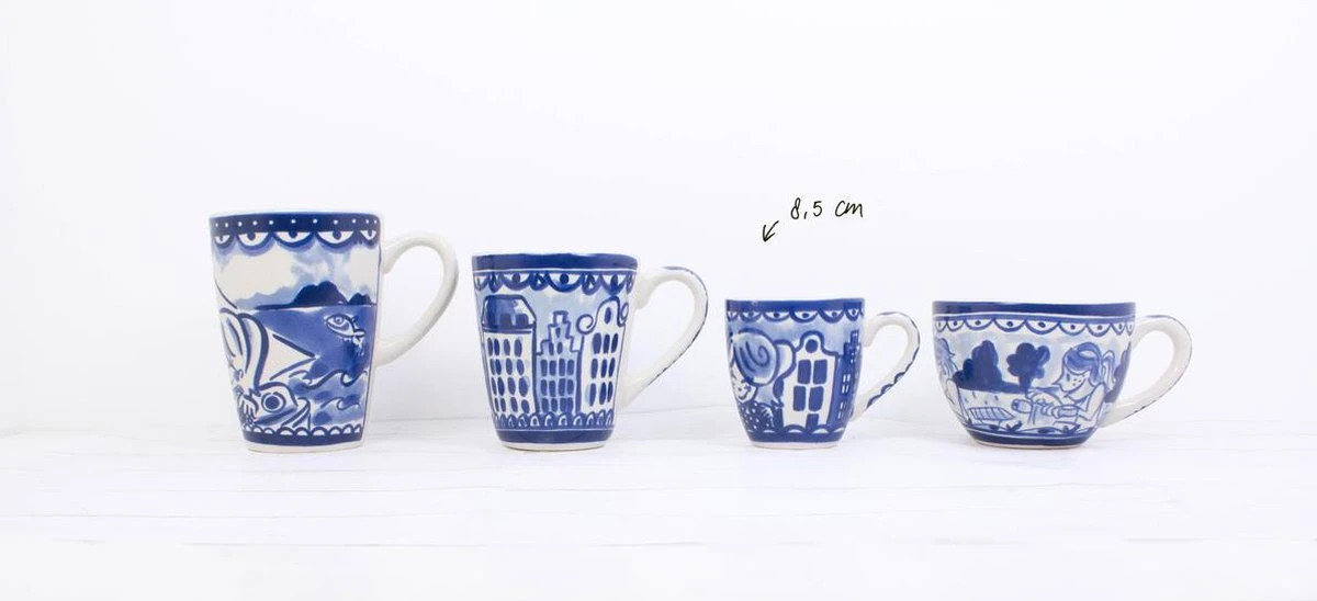 Ook zo dol op Holland? Dan is het Delfts Blond servies helemaal geschikt voor jou. Een serviescollectie met Blond interpretatie op het traditionele Delfts Blauw. De illustraties zijn geïnspireerd op typische Hollandse tafereeltjes zoals schaatsen, fietsen in Amsterdam en varen.