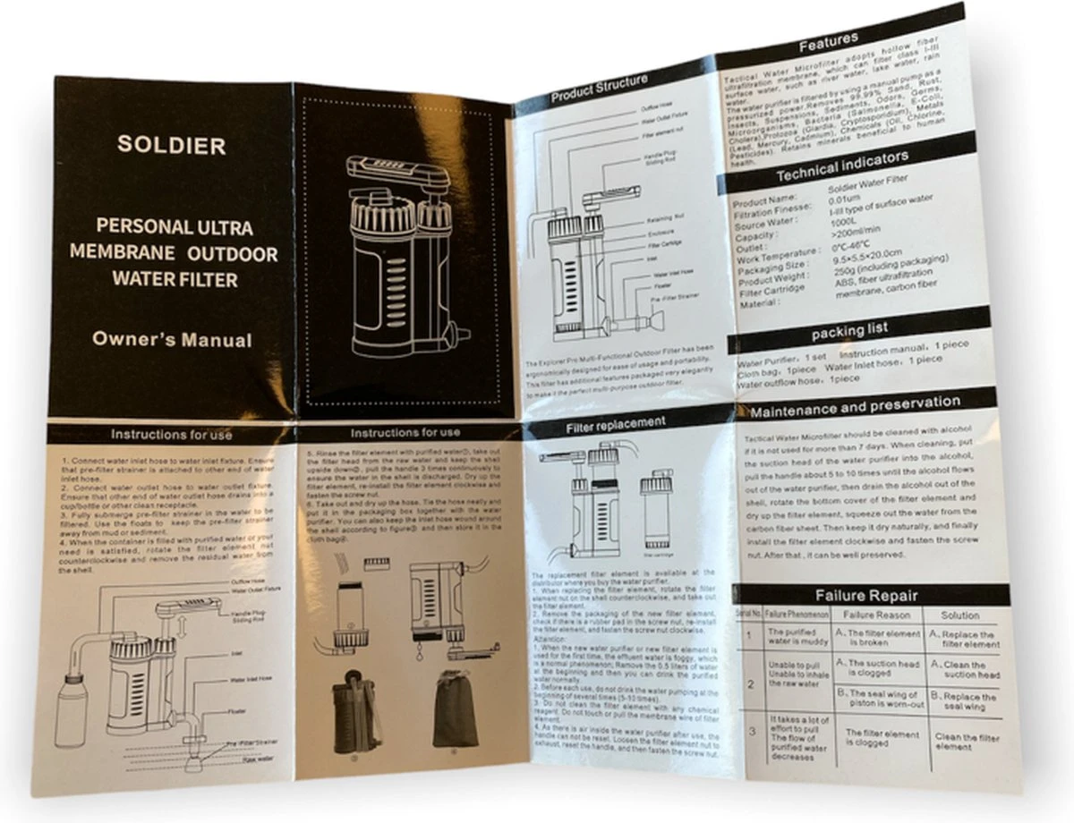 Het hoogwaardige micron hollow-fiber membraan en de antibacteriële carbon-fiber combinatie van deze filter verwijdert maar liefst 99,99999% van alle bacteriën, aroma’s, chloor, organisch materiaal en zware metalen. Daarmee behaalt de Filterwell waterfilter een zéér nauwkeurig filterresultaat, waarop je kan vertrouwen! Met deze waterfilter ben je dus verzekerd van voldoende schoon drinkwater op ieder moment. Alles wat je nodig hebt is een waterbron in de natuur!