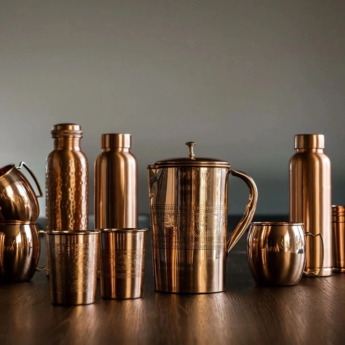 Ayurveda bepleit al sinds de oudheid de voordelen van het drinken van water uit koperen drinkgerei. Ayurveda stelt dat wanneer je water minimaal 12 – 18 uur in een koperen fles of beker bewaart, het een balancerende werking krijgt op de drie bio-energieën (dosha’s) die door het menselijk lichaam circuleren (Vata: luchtelement, Pitta: vuurelement en Kapha: waterelement). Daarnaast verandert water in koperen drinkgerei in natuurlijk alkalisch water, wat helpt om de pH-waarde van je lichaam in balans te houden. Lees hier meer