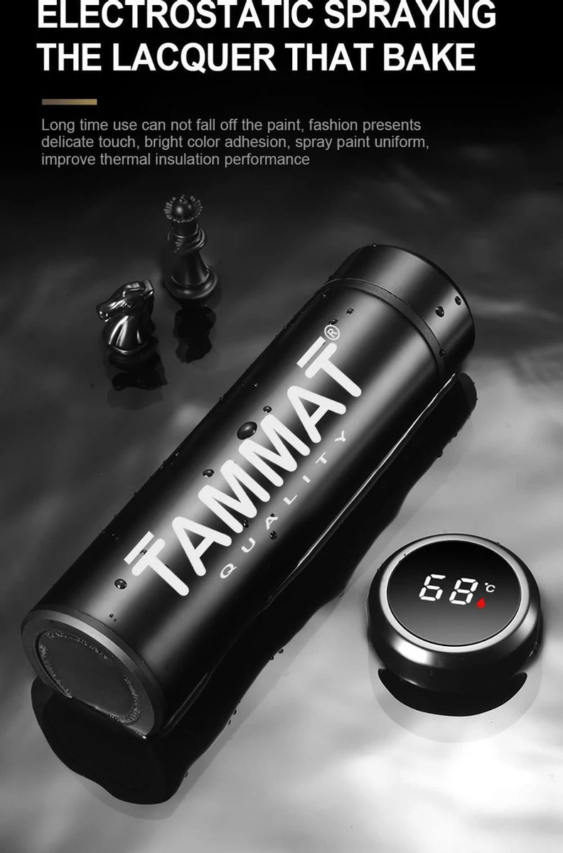 Deze 500ml slimme Thermosfles met temperatuur display is nieuw en trendy! Ons nieuwste TammaT Thermosfles heeft een stijlvol design en past perfect bij al je accessoires. Door de slimme temperatuur display, weet je altijd hoe heet en/of koud je drinken is, dat zorgt ervoor dat je nooit meer je mond of tong verbrand. Door roestvrij metaal en dubbelwandige vacuüm, maakt deze slimme rvs drinkfles robuust en duurzaam.