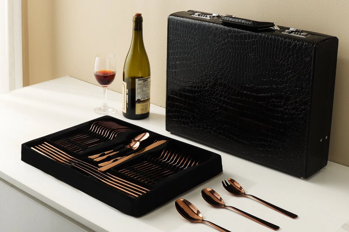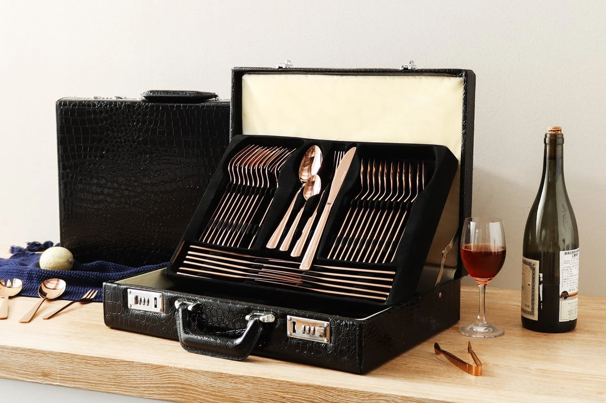 Swiss Pro+ Bestekset in Koffer-72 delig-12 persoons-Zwitsers Kwaliteit-Complete Set-100% roestvrijstaal- Rose Gold 24k – Rose Goud 24K